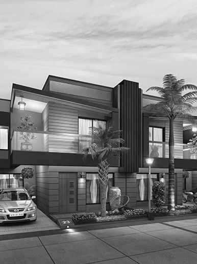 Hari Om - Sollitaire, A scheme of modern twin/row houses giving a grand experience of bungalow by innovative architecture, modern elevation & high quality amenities along with splash pool, children play area and luxurious club house.